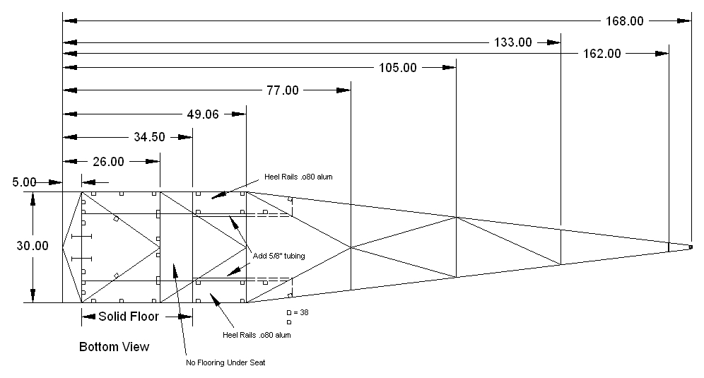 I'm thinking I'll go with the heel trays from the front pit to the back pit, BUT put a complete aluminum (two thin sheets of aluminum glued to a corrugated plastic panel to make it strong - an aluminum sandwhich) flooring in the front so that passengers will have a little bit better chance of not going through the skin on the belly underneath where their feet are.