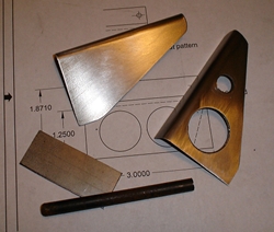 I'm pretty convinced that the two arn't that much different in weight. So much so that I've cut 30 blanks out for the Mac designed stand-off; the "L" shaped piece of .o32 4130. In the picture, to your right, you can see the two basic designs. The "plans" stand-off consists of the 3" piece of tubing and the rectangular piece