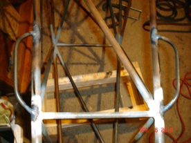 After finishing the bending and trimming and photo sesssion, I logged onto the computer so that I could let Jim know... I figured something out. Kinda figured and Yep... had a response to my questions. Turns out he had some scrap 2" tubing (guess my eye wasn't too discerning, eh ?) laying around and used that for the 1" radius corners and made the Handholds with 3/8" x .o49. Maybe it's the wall thickness that's the ticket... .o49.