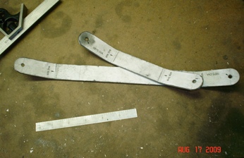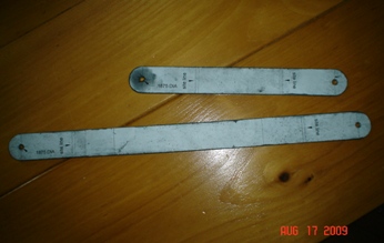 Oh yeah... where I was going with this. Needed to fill the time with something constructive so I laid out the Stab Wire Attach Strap on DeltaCAD; both of them. Printed them out, glued them on, cut them out, ground - filed - and sanded them, drilled and bent each arm to 27 degrees.