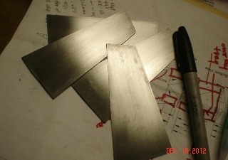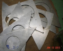 Sunday I cut the ligthening hole in the remaining gusset for station 27.o and cut all four out for the gussets at station 10.5. I'm thinking... the faster you cut the 4130, the better it is... otherwise it seems to "harden" the steel and makes it almost impossible to cut through. Don't quote me on this... just an observation.