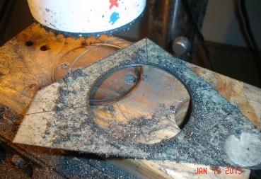 The gussets for these locations are pretty big. Figured I'd drill a few lightening holes in them. (per Tony B... you take more out of a piece with a larger hole than two smaller hole; (1) 2" instead of (2) 1"). Didn't have the 2" I wanted to use, but a 2 1/2" will work. Set about drilling these out of gusset 27.o. I kind of remember it taking awhile to cut the holes... but 20-30 minutes for each one ??? All I did was stare at those pieces of metal for an hour and a half.