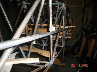 Let's just say it was a pain in the ass flipping the fuselage. There's not much room in the one-car garage. And there was only me doing the flipping of a frame that weighs around 100 pounds. And there is the Harley Sportster that sits a mere inches away from the turning fuselage. And the front and back supports... ahhhh, let's just say... it took a little over an hour to flip and level the fuselage when it should have only taken a quarter of an hour. The good thing... the fuselage has no damage and the Harley Davidson sits untouched !!!