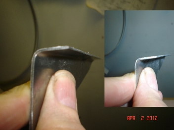 Wasn't happy with the slight cupping on the 6 inch and 5 inch stand-offs I made the other day. Tonight I spent the time in remaking (2) of each; from a sheet of .o32 4130 through to the bend. Here's photos of the old one, on the left, and the new one, on the right. thankyouverymuch...