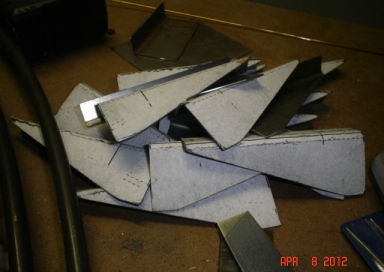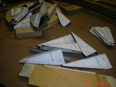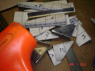 Banged out (16) more four inch stand-offs. That leaves about eight more to cut, file, sand and bend.