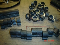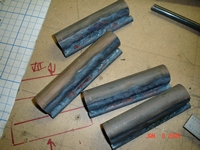 I'm there working in the shop... first I need to decide on how I'm going to cut these tubes into the .75" and .5" pieces for the hinges. I decided that the chop saw wasn't good for the task because it tends to wander, especially when cutting smaller pieces. Only other option would be to use the bandsaw or cut them out by hand