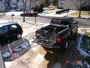 OK... so I have a place to work on the main gear, which entails flipping the fuselage on it's back and building it right on the frame. My truck bed is 96" long... the fuselage is 168" long. Looks like there's going to be quite a bit hanging off the end of it. Figure I'd better move it during the day so that it will be clearly seen by other drivers. Don't need over two hundred hours worth of work getting pranged !