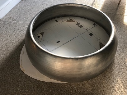The images below show the concept so far. But! It's still using the full 12inch deep cowl ring. I plan on routing a 44inch hole in a piece of 48inch x 48inch piece of plywood and sitting that over the existing 46inch diameter ring to give me the correct diameter for the final composite cowl ring (I acutally need to figure out the thickness of the piece so that I can add the additional room so that the final piece won't be smaller than the 44inch diameter that I need. Follow that?)