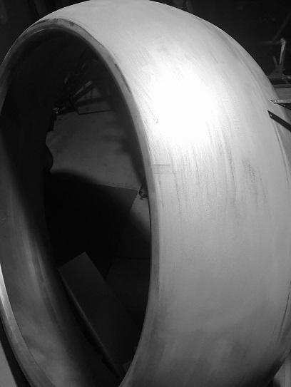 Current status: sanding the ripples off of the spun aluminum cowl ring so those ridges don't transfer into the mold.