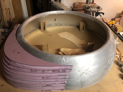 It will be a few days before I can get back on this. Right now I'm using the table in the basement workshop for the UWCS (Upper Wing Center Section). I'm stepping lightly into this whole fiberglass mold making business. Maybe I should make a test piece first?