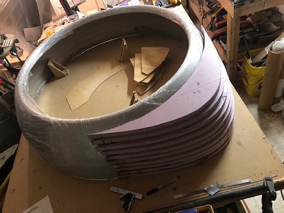 In getting ready to lay up the fiberglass for the female plug... I made eight (8) cowl ring supports. These will be placed and secured on the inside of the cowl ring to keep it from twisting as the fiberglass cures. I have all eight cut and ready for service. It took me a little bit of time to get the shape right. And when I thought I had it right... I still needed to make a slight adjustment to them in order for them to fit properly to the shape of the inside of the ring. They're ready now...