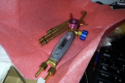 The other day Fi sent me a message through facebook... He said he had something he wanted to send over to me. A Russian welding torch. I'm like... sweeeet !!! Then he said: "So; the torch -- it comes with a condition. I want to hear your story on how you will hook it up to your rig. It's all metric on the fittings."