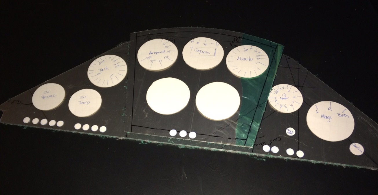 With the layout figured out it was time to make a mock-up so that I can do a test fit in the biplane. Here's a rough of the back instrument panel. Time to see if my calculations were correct !