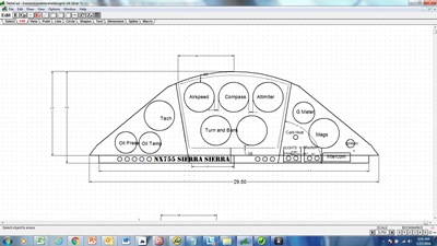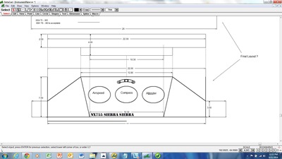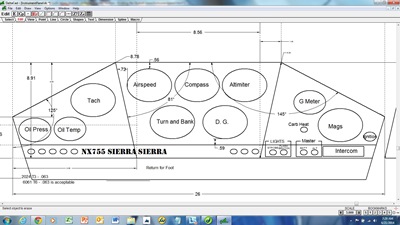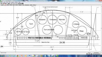 Drew it up on DeltaCAD. Here it is, or at least how it looks so far. My panel has all the instruments. The front pit has just a minimum amount; airspeed, altimiter and compass.