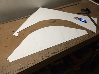I tried making what I wanted out of white display board. Worked on it several hours (that's AFTER working out the details on DeltaCAD) and I came to the conclusion that it ain't gonna be easy getting it to the point of where I would be happy with the look AND finish of the panels. It was a surprisingly fast decision to make following on the heels of the 300+ hours spent getting the custom turtledeck to the point of where I was happy with it.