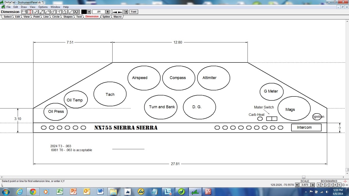 Spent the last hour marking up the .o63 2024 T3 aluminum that I have with the shapes of the double instrument panels.