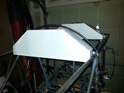So with the change I'll looking for the full curve of the "top" of the panel. I've got the old pattern from when I made the former for the front pit's curve but the rear pit's former... not so much. Haven't been able to find it and spent a lot of time looking for it then trying to trace the curve of it off the existing former. The trouble with that is... I now have the seatbelt support for the passenger now in place and that juts back through the former. DAMN ! I had this all figured out before putting that support in and now I've gone and changed my mine.