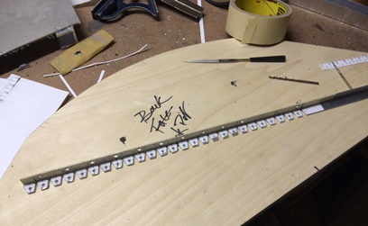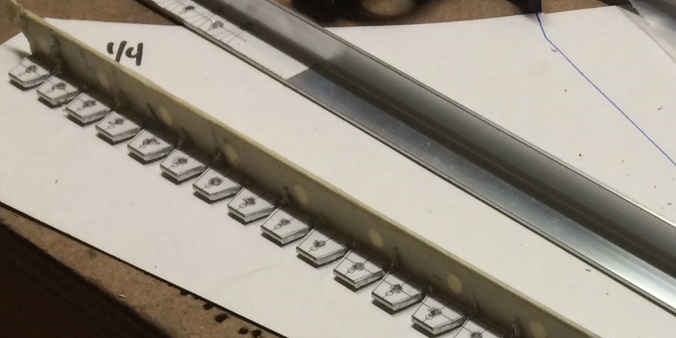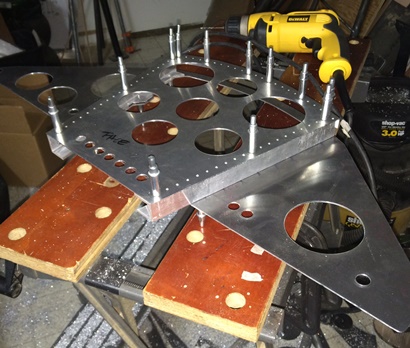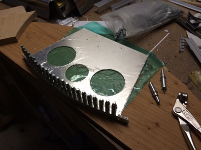 Glued on my 1/2inch, spaced printed patterns. Drilled and deburred every 1inch on center... then aligned and clamped the "U" channels (with the face plate attached) to the main panel. Checked. Double-checked. Triple-checked... then checked again for alignment. then... started drilling and checking for movement.