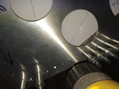 Back down to the basement workshop to drill the instrument mounting holes for the main panel. Went to insert the 2 1/4inch aluminum disc from the jig into the instrument hole and... it wouldn't go in! WTH ??? All that time I took making sure the diameter of the holes I cut would allow room for the instrument... and NOW... it's too small ??? WTH ???