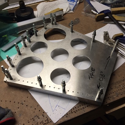 The 19th: Need more cowbell... er, drilled flanges. Spent the night center drilling marks then drilling through with a number 40 drill bit.