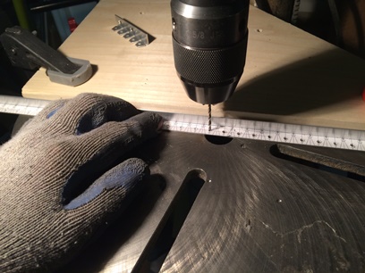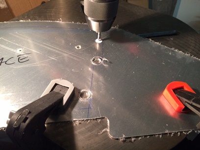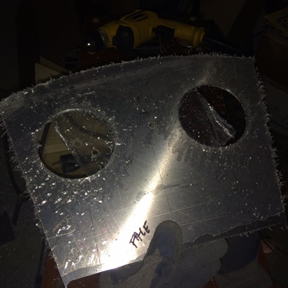 Back to the point of measuring for the three holes... the adjustable cutter was already set-up for the 3 1/8inch holes. Cut those out pretty quick even though the blade was getting dull (which I'll change for the 2 1/4inch hole). With both 3 1/8inch holes cut I call it a night. Tomorrow... the last hole and then everything else to catch up to the back pit's panel.