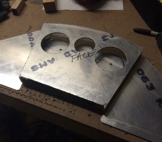 Collected all the tools and pieces I needed to complete the task and set about doing it. Needed to glue the patterns onto the flanges and then set up the drilling jig to keep the distance off the edge all the same... blah... blah... blah...