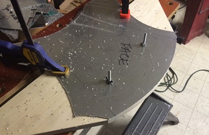 Once I got into the swing of it... I enjoyed it. But, it was just the thought of monotony that was killing it. Anyways... chucked the center bit and lowered the bit into the flange for my starting divit/hole. Changed that out for a number 40 bit and drill, and deburred 28inches of holes. (Figured I needed approx. 13inches for each of the center curved sections on the front pit's instrument panel.) Not sure if I'll have 1inch or 2inch spacing for the screws along the top. Once I've decided, I use the patterns I have but just mark the 1inch or 2inch spacing on them...