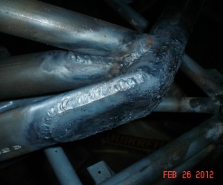 As the tube thickness goes up... so does your need for being patient. Gotta go back to the basics of pre-heating the area around the weld and then making sure that the puddle starts to form before you weld. The cross tubes are .o83 and the vertical tubes connecting to the cross tubes are .o95 (I think... didn't check the plans so don't quote me on this). There's a lot of metal to heat up there.