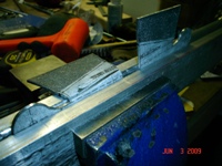 I started the Rudder Horn a few days ago... got it to the point of only needing some finish sanding, the ears bent and the holes drilled in it. Last night I decided to finish it so that I could check off another thing from my list. Spent a half hour going nowhere with it. Ruined the end of one of the dead-blow hammers, is about all I did. That .100 material just doesn't want to bend. Throught for a minute and decided that the next one I make I'll leave the ears about 2" longer than needed so that I could use that leverage to hammer those damn ears to a 90 degrees. (Note: The Rudder Horn to the left is the second one I made.)
