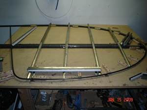 It had a decent lip on it so that I could do practically all the bends. I found that it was just a little tough getting to the bends where the ribs went from 7/8ths to 3/8ths. But, with a little work we managed to get all the bends completed. What I thought would take 1/2 hour ended up taking the two of us close to two hours; Steve would work the