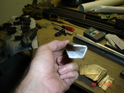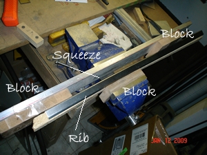 handle for clamping the metal while I positioned the piece in the brake and then worked the handle that made the bend. I can guarrantee that you'll have a difficult time in making those bends without a bending brake this big. This brake actually had a HUGE weight on the one end of the bending handle that helped (tremendously) in bending the metal ribs.