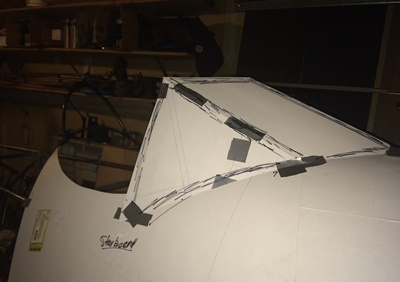 And now that I'm figuring out the curvature of the top of the fuselage I can start working on some other things... like the faceted windshields. I wanted them faceted because I think it gives the biplane a nostagic look (although many of the older biplanes had flat, wrapped plastic for their windshields). It's just my opinon...