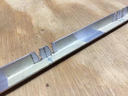 Used the same pattern I had used on the turtledeck hatch. It's the same L-shaped extrusion, so why not. Didn't notch the entire piece... why would I... it would only allow the piece to bend.