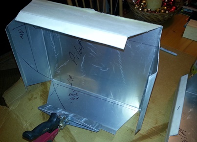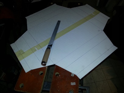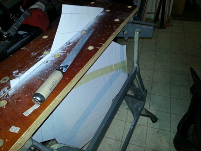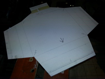 Worked on the "airfoil" for the main landing gear during the day. Tonight... I drew up the pattern on a piece of display board and cut out the square of aluminum I'll be making that seat pan from.