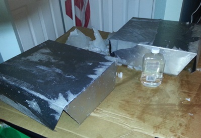 Used MEK (outside and with gloves on) to remove all that glue. Just pulled the plastic film off by hand, but it wasn't easy. The film... mindless work that I did inside watching TV. oh yeah... found a dimple on the one pan. Not sure how that got on there. I'll see about taking it to some guy to take it out... one of those guys that takes the dents out of cars.