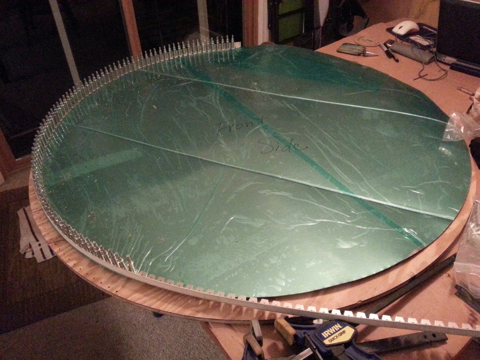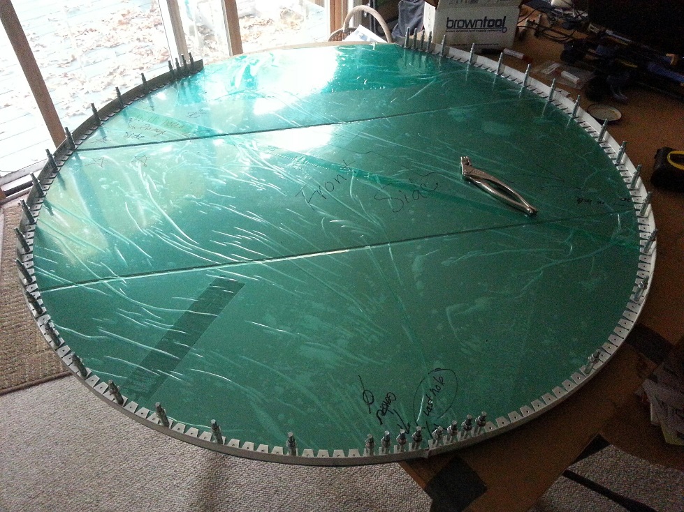 Grabbed the 44inch diameter piece of stainless steel (the firewall) to figure out what I needed to do with the beading on it.