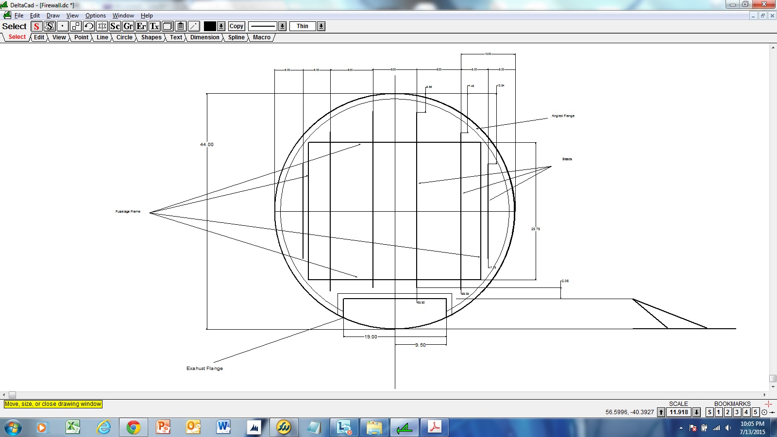 Needed to figure out where I wanted to put the beads I'll be rolling in the fires wall to help keep it from oil canning. Took a few measurements on the frame out in the garage workshop and then headed to the computer to draw it all up on the CAD.