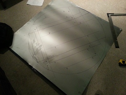 Anywho... spent the next hour and a half marking up the cut-lines and bead-lines on the piece of stainless. Ready for cutting out...
