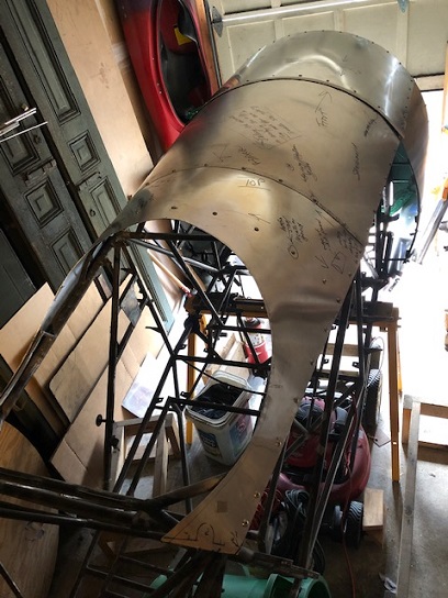 No pulling pre-cut, pre-drilled sheet metal panel from a box and attaching to the pre-made firewall and already welded on formers. And that's the beauty of it. Making each and every piece to my excellence, which has its slight imperfections.