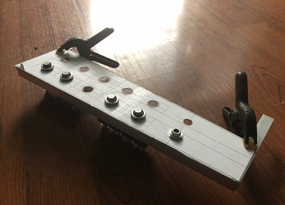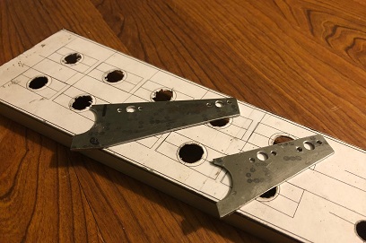 My decision to discard the intercom idea wasn't until after I had tested drilling the holes for the intercom (to make sure that they were in the right place), and a "test" blank drilling the holes for the intercom AND the breaker openings (of which the first one moved, which made it a "test" piece).