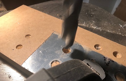 With all of that behind me I created a few more CAD's... decided on one and started drilling again. The larger 1/2inch holes put a lot of burr on the back side of the blank. Tried filing them off at first then remembered that I used a larger drill to knock off the excess slag. Worked like a charm...