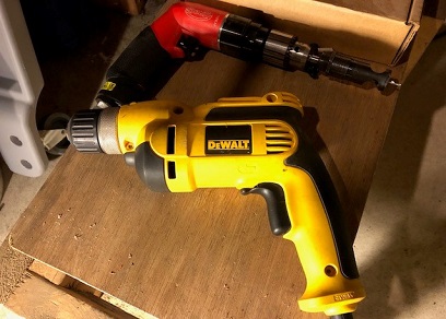 The dilemma I had with not having enough room for the DeWalt drill... fixed by using the small Soux air powered drill I have.