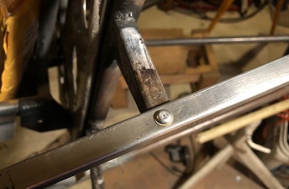 A discovery when flipping the fuselage on Friday night. I was going to do the usual rotation by bolting the cross brace on the front with the tube and then resting that on the front support. Lower the front saw horse. Then go to the tail-end and rotate. Put the front tube in its cradle and bumped it around a it to move the fuselage forward to allow the rudder to sit on its side (needed more room in the back because of the shelving back where it was... wouldn't allow it to rest on its side). Did that a few times and it felt like the cradle it was sitting on loosened up and was allow it to fall back and down ??? WTH ?