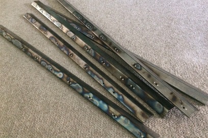 Worked on filing and sanding the four guides. Finished up with that in about an hour... took them out to the garage workshop and burned off the patterns. Still need to do a little more work on them (smoothing out the edges) before welding them on.
