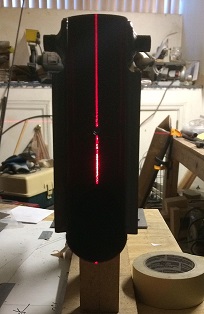 Bolted the pilot's stick-boot/stick to the torque tube and it was near vertical ? A half a degree because of a little play, but... vertical. Went to the front side with the laser level and got it centered. Bolted the half-stick-boot on the assembly and got what seemed vertical. Then tried it with the stick to see if it went vertical the length of the tube. A tweak here and there and it seemed to be okay. Took it out to the garage and tacked it on in two places on the one side of the boot. Back down to try it out on the aseembly and it was off vertical. Luckily it was off vertical on the side that wasn't tacked. Carefully opened up that side of the stcik-boot by bending it open (using the two tacks as a hinge) and started sanding it down. Got it to the point where it looked like it closed enough to bring everything to where they needed to be. Out again to throw another tack on the other side. Back to try it again... and near perfect.