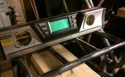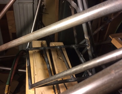 Started off by aligning, and tacking on the battery shelf. The first tack... the tray shifted (?) so I had to cut it off, re-align, and tack again. also... Did the initial measuring of the support tubing.