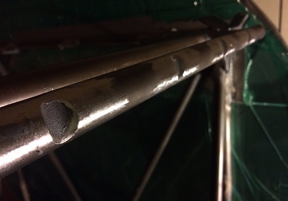Two days... and I'm finally ready to tack and final weld the two new vertical supports. What took me so long, you may ask ?? Had to grind and file down the left-over welds from the first supports.