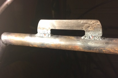 Got them bent to the correct shape and then tacked and welded them into place. Problem is... the weld build-up needs to go. These welds aren't for structural purposes so I filed and sanded them flush with the tubing (I'm not saying to you that this is right, but I figure since it is not structural I'm doing it for the purposes of just sealing the hole that I made). Make sense ?