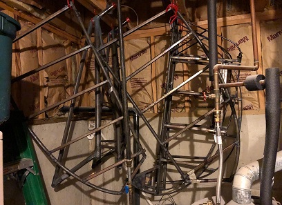 Oh yeah... did some cleaning up and hung some hooks so that I could better organize the large pieces I've made for the biplane. Not only are they organized... they're up and out of the way too!