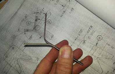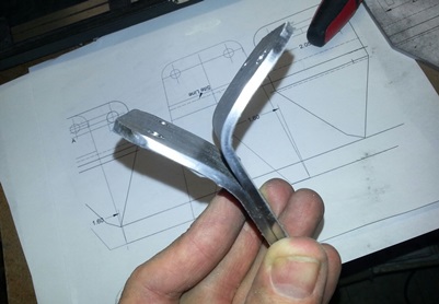 First thing I did was cut a few pieces of .o32 4130 to the approximate length of my brackets. Mark them where the sight line was and then bedn them to shape. Held it up to the image of the rear bracket and it looked great. Held it up to the actual rear bracket... and it was looked great too!